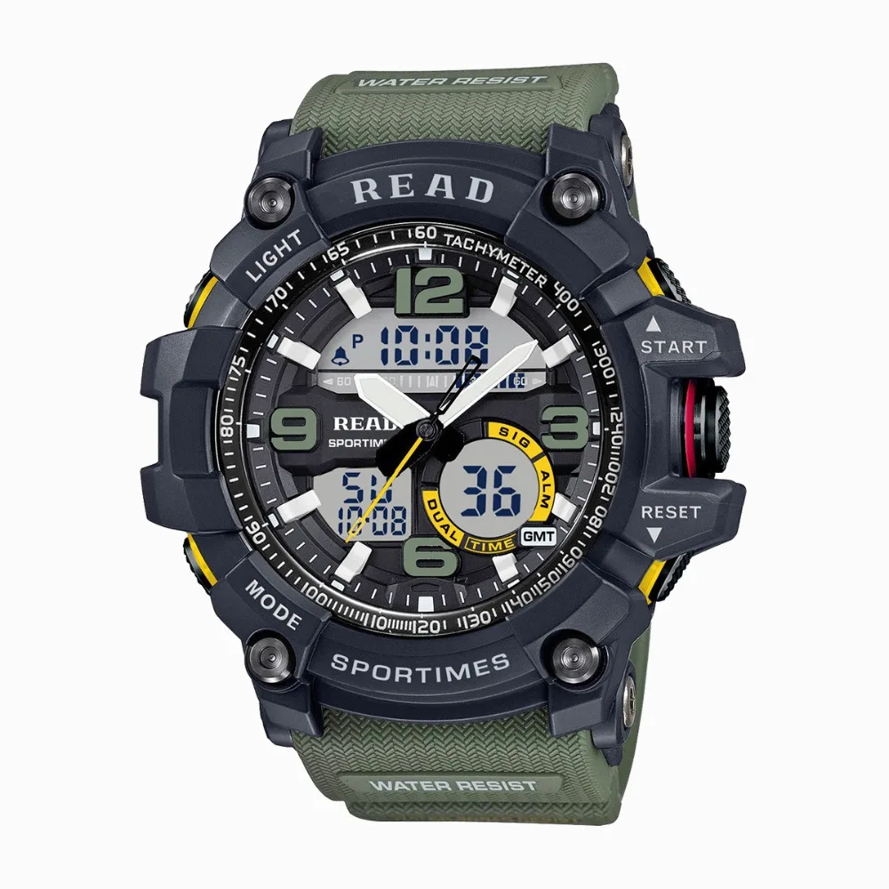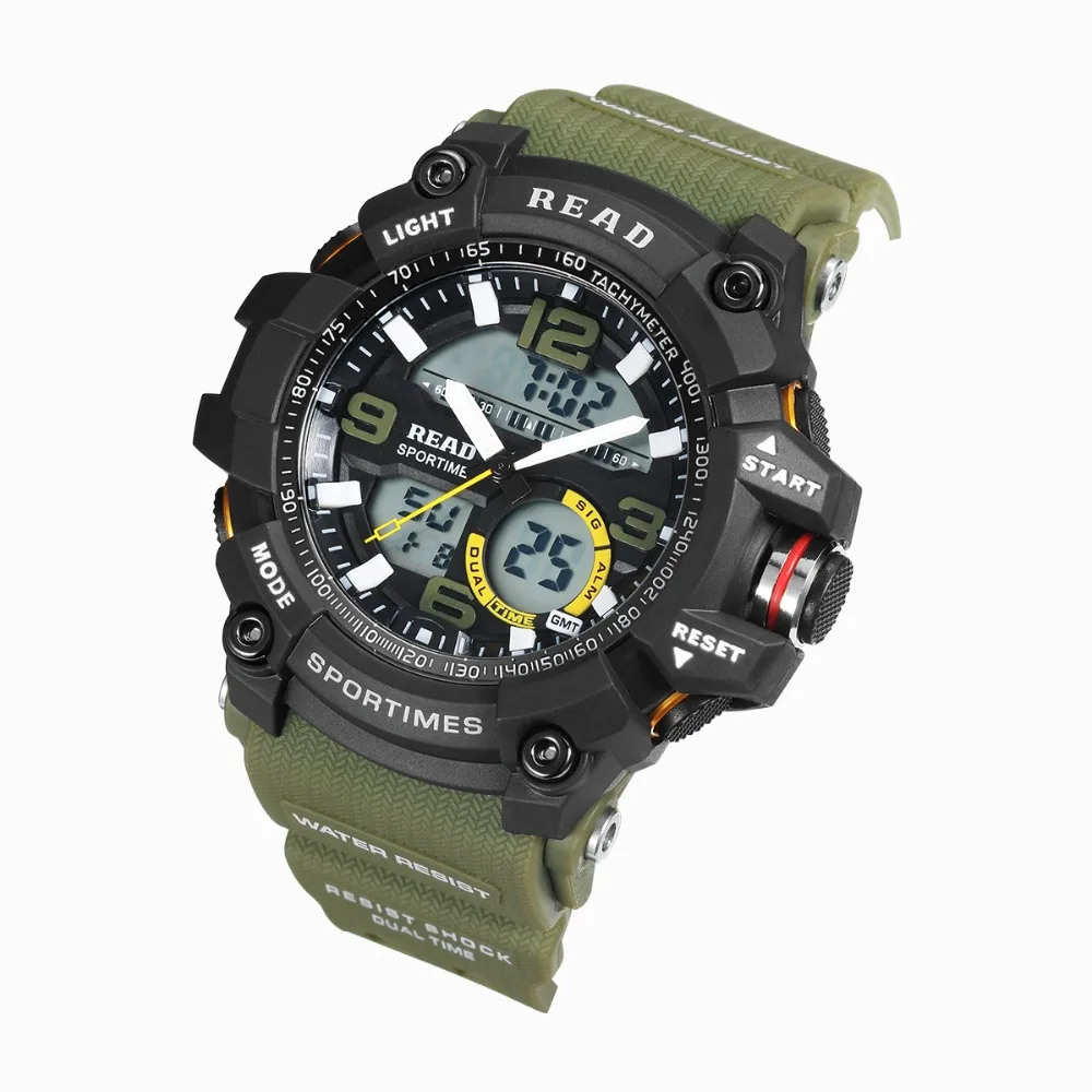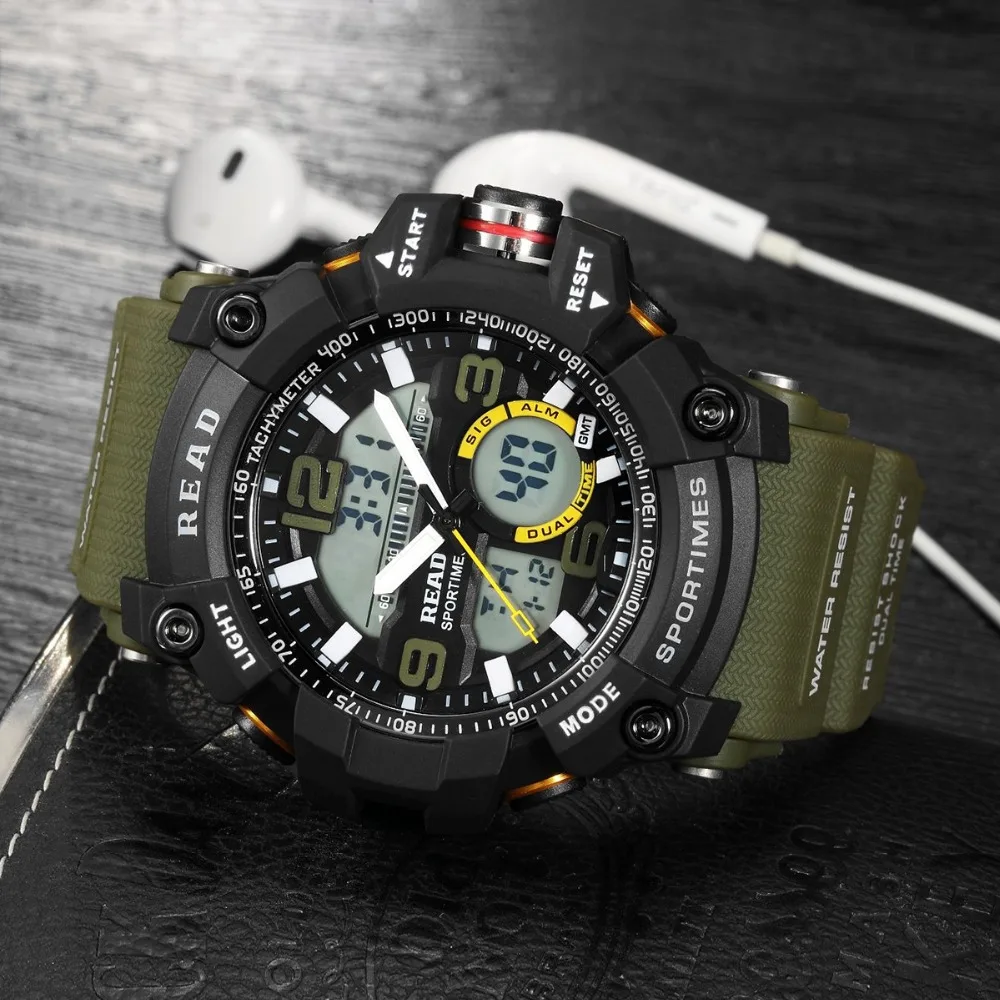Wristwatch READ Band 90002 Men Sport 2019 Military Quartz Watches Date Round Dual Digital Scale Analog StopWatch Relogio militan